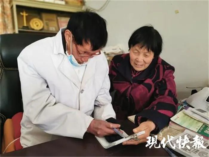 妻子協(xié)助張又今看診。圖片來源:現(xiàn)代快報