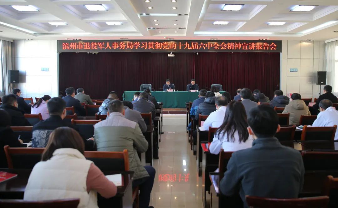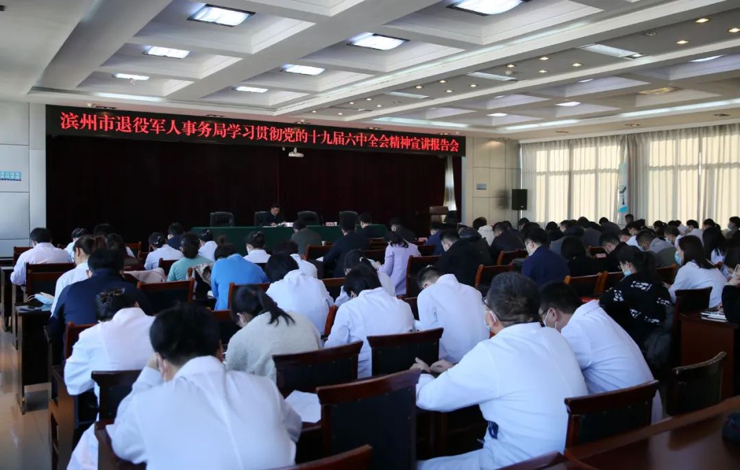 12月7日,濱州市退役軍人事務局學習貫徹黨的十九屆六中全會精神宣講報告會在我院舉行。報告會由局黨組書記、局長巴明華主講,局黨組成員、副局長張建軍,局黨組成員、四級調(diào)研員李榮國,市優(yōu)撫醫(yī)院黨總支書記李學軍,局機關及局屬各單位黨員干部職工參加報告會。報告會由李榮國主持。