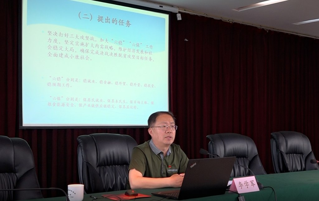 黨課以“凝心聚力共謀發(fā)展,團結(jié)一致共克時艱”為主題,圍繞“認清異常嚴峻的形勢”“以發(fā)展是第一要務(wù)的理念化危為機”“以抱團取暖的心態(tài)共克時艱”三方面展開。