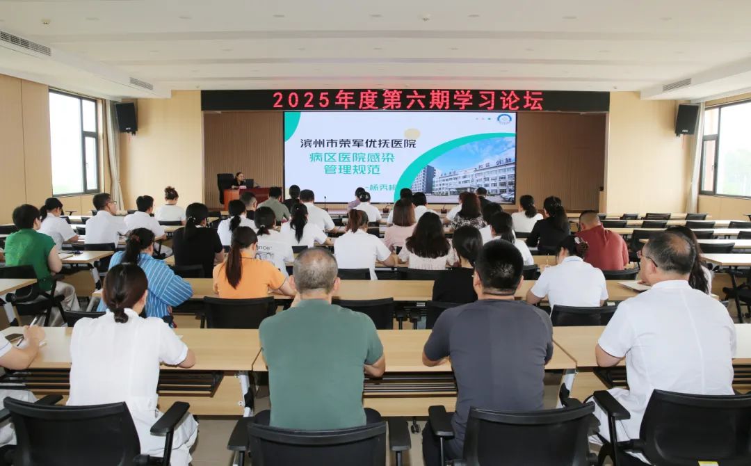 6月20日,濱州市榮軍優(yōu)撫醫(yī)院召開2025年度第六期學(xué)習(xí)論壇,本期論壇由感染辦公室主任、副主任護(hù)師楊秀梅以《病區(qū)醫(yī)院感染管理規(guī)范》為題與大家進(jìn)行學(xué)習(xí)交流。院班子成員、除值班人員外的全體職工參加。