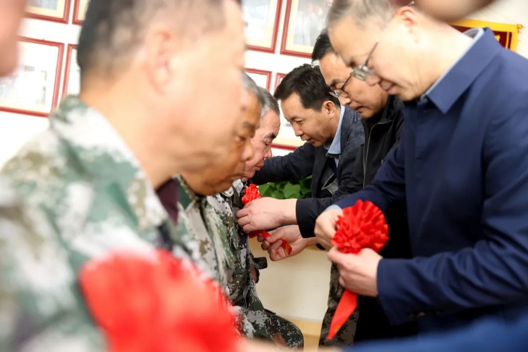 歡迎儀式上,與會(huì)領(lǐng)導(dǎo)及黨員代表為優(yōu)撫對象佩戴“光榮花”,以莊重儀式致敬他們的奉獻(xiàn)精神。