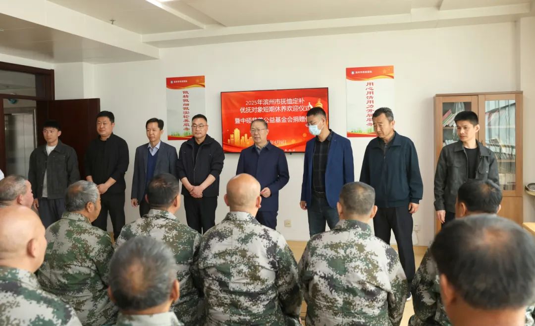 4月9日,2025年濱州市第二期撫恤定補(bǔ)優(yōu)撫對象短期休養(yǎng)歡迎儀式暨中碩慈善公益基金會(huì)捐贈(zèng)活動(dòng)在市優(yōu)撫醫(yī)院舉行,來自鄒平市、沾化區(qū)的33名優(yōu)撫對象,在當(dāng)?shù)赝艘圮娙耸聞?wù)部門負(fù)責(zé)同志、市優(yōu)撫醫(yī)院領(lǐng)導(dǎo)和黨員代表的共同見證下,開啟了一段溫馨尊崇的休養(yǎng)之旅。
