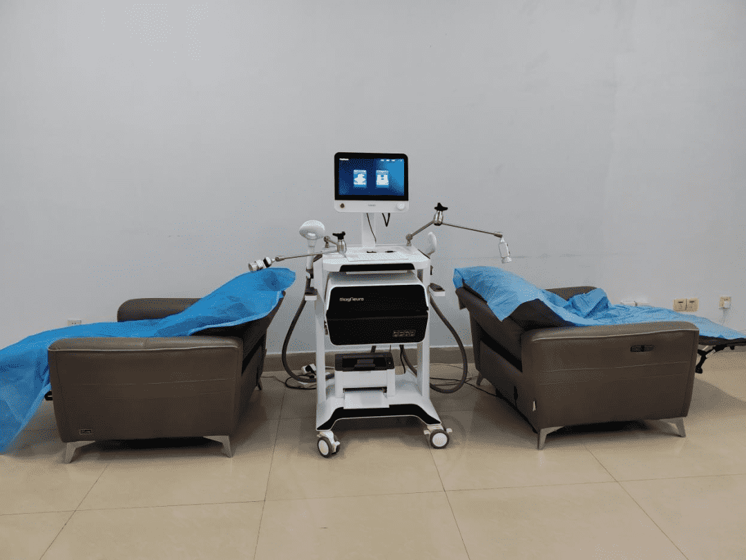目前我院綜合治療區(qū)配備3臺經(jīng)顱磁儀觸控一體機(jī),可供5人同時(shí)進(jìn)行治療,日承載量約100人次。目前已為300余名患者進(jìn)行了2000余次治療,并取得明顯效果。