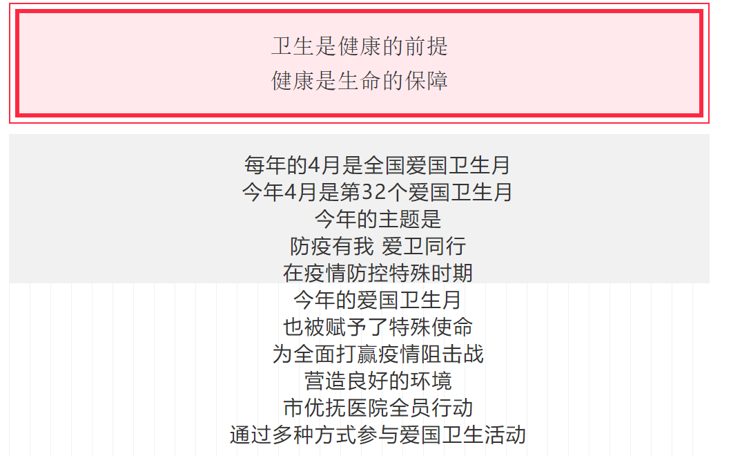 印發(fā)《關(guān)于開展“愛國衛(wèi)生月”公共環(huán)境衛(wèi)生集中整治志愿服務(wù)活動的通知》,在微信群、網(wǎng)站、微信公眾號發(fā)布文明用餐、文明行為宣傳廣告,倡議全院職工養(yǎng)成良好衛(wèi)生習(xí)慣和衛(wèi)生健康理念。