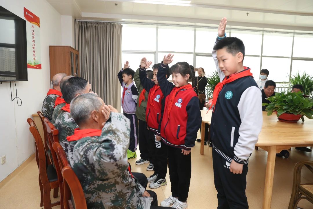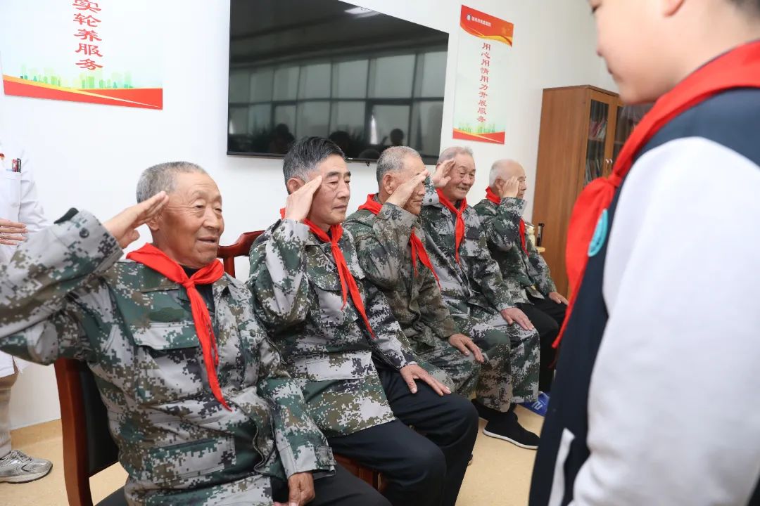 隨后,孩子們挺直腰板,向老兵們敬少先隊(duì)禮;老兵們則以標(biāo)準(zhǔn)的軍禮回應(yīng)。兩代人的敬意在目光交匯中升華,紅色精神在無聲中傳遞。