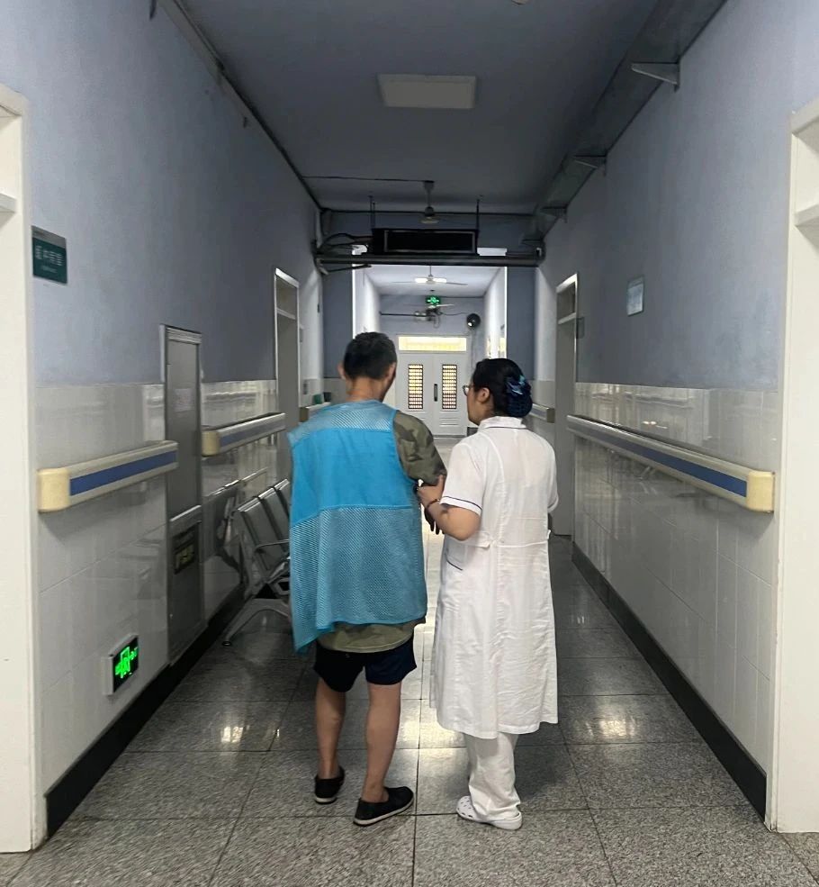 患者胡某因出現(xiàn)外跑、多疑和失眠等癥狀,在家中無法得到有效管理,被送入我院一病區(qū)進行住院治療。入院后,胡某對醫(yī)護人員表現(xiàn)出明顯的敵意,面對胡某的不配合,醫(yī)護人員總是耐心勸說、及時安撫不良情緒,不厭其煩地與胡某溝通。由于在入院檢查時發(fā)現(xiàn)胡某存在行走不穩(wěn)的癥狀,為了確保安全,起到醒目提醒的作用,護理人員為其穿上了防止跌倒的藍色標志馬甲,參加集體活動時會安排陪護人員攙扶行走,交接班時也特別關(guān)注胡某的安全。此外,考慮到胡某的身體素質(zhì)較差,醫(yī)護人員輪流利用休息時間為他購買營養(yǎng)品,增強身體素質(zhì)。這樣的關(guān)心日復一日,從未有過間斷,胡某的態(tài)度悄然發(fā)生了變化,雖然還是話少,但治療漸漸順利了起來。