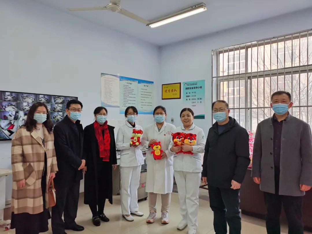院領(lǐng)導(dǎo)先后到女病區(qū)和一、二、三病區(qū),食堂,頤年優(yōu)撫康養(yǎng)中心及物業(yè)執(zhí)勤點,看望工作人員,給他們送上虎年吉祥物和果籃,詳細(xì)詢問各崗位值班安排及工作情況,對大家堅守工作崗位、舍小家為大家的精神表示衷心感謝。并叮囑值班人員切實做到疫情防控和安全管理不放松,立足本職崗位,為服務(wù)對象提供更多人性化關(guān)懷,確保在院優(yōu)撫對象、住院患者以及入住老人度過一個平安祥和的春節(jié)。