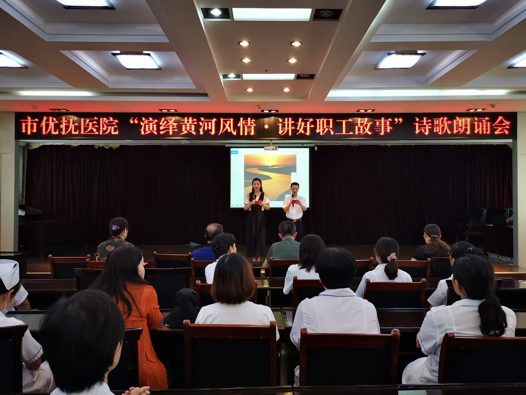 活動現(xiàn)場,11個節(jié)目精彩紛呈,朗誦者用慷慨激昂、精神飽滿的誦讀,表達了醫(yī)院職工對黃河的禮贊和熱愛之情。