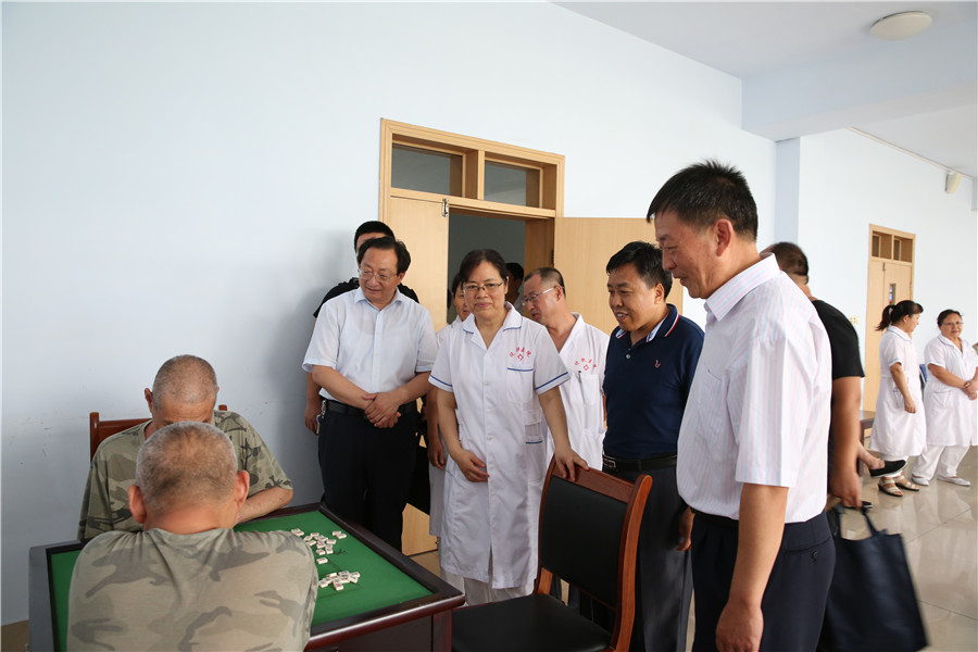 調(diào)研組一行先后到我院老年人養(yǎng)護(hù)中心、老年內(nèi)科、病區(qū)及工娛治療室進(jìn)行了實(shí)地參觀,并就精神殘疾人治療、康復(fù)、精神疾病救助等項(xiàng)目進(jìn)行了對(duì)接洽談。