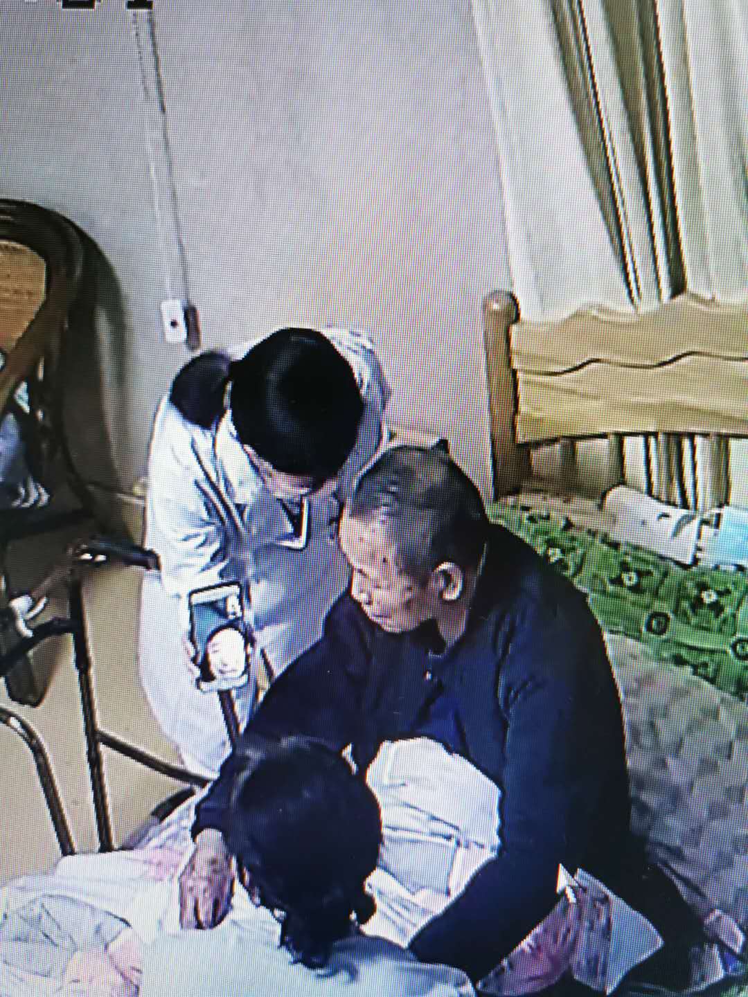 前幾天216的李爺爺因?yàn)橄雰号?,躺在床上不起來吃飯,護(hù)理員徐大姐立馬聯(lián)系老人孫子,并通過孫子聯(lián)系老人的三個女兒,利用微信開通視頻,讓老人與子女見上了過年后的第一面,老人和三個女兒,一邊說一邊哭,我們的徐大姐也動情的哭了起來。一個多小時的視頻通話,讓老人的情緒漸漸平復(fù)。當(dāng)天晚上李爺爺就主動要求吃飯,吃了滿滿一大碗面條。我們開心的笑了。后來老人女兒給徐大姐發(fā)微信說:老人由你們照顧我們很欣慰、很放心。并送來水果表示感謝。