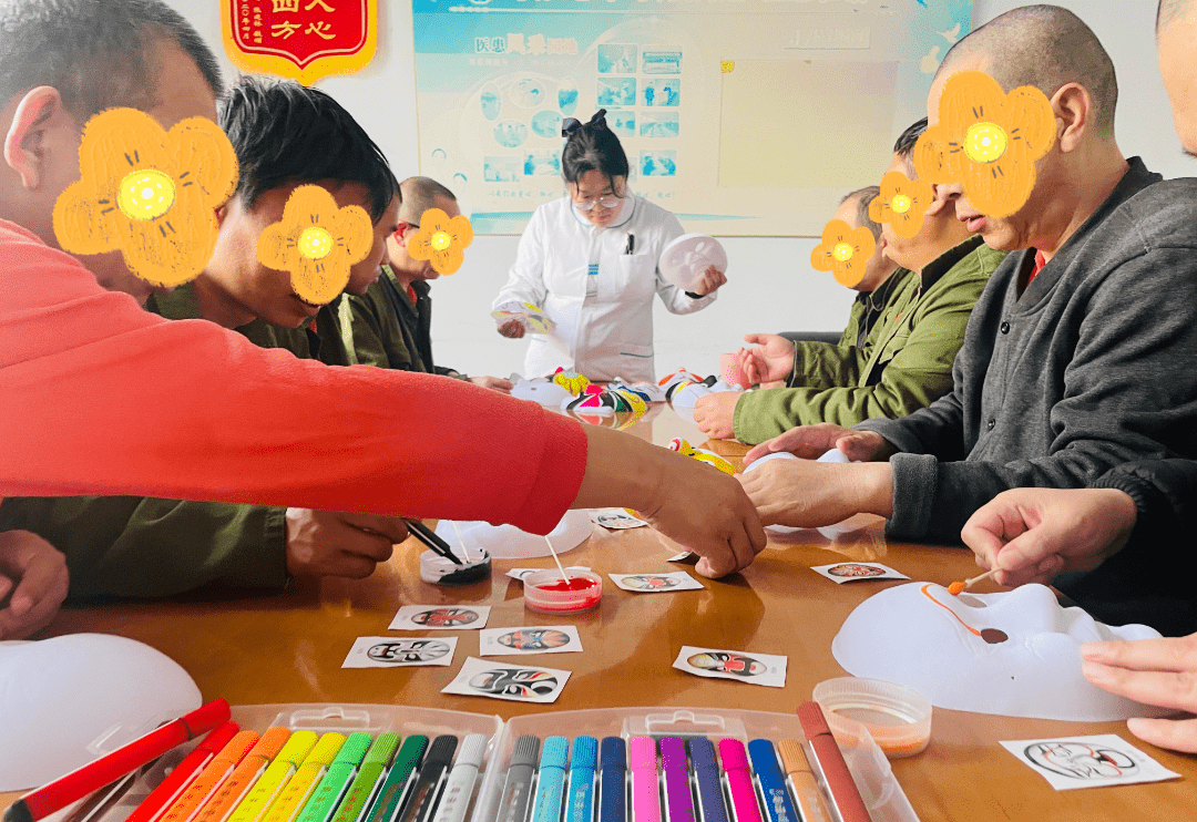 護(hù)士們組織患者用水粉顏料繪制臉譜