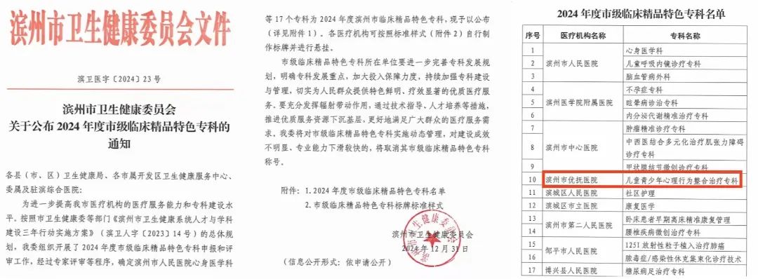 濱州市衛(wèi)健委發(fā)布了《關(guān)于公布2024年度市級(jí)臨床精品特色專(zhuān)科的通知》,濱州市優(yōu)撫醫(yī)院兒童青少年心理行為整合治療專(zhuān)科榮列其中,被評(píng)定為市級(jí)臨床精品特色專(zhuān)科。這一榮譽(yù)的獲得,標(biāo)志著該專(zhuān)科在兒童青少年心理行為治療領(lǐng)域的卓越成就和顯著特色得到了高度認(rèn)可。