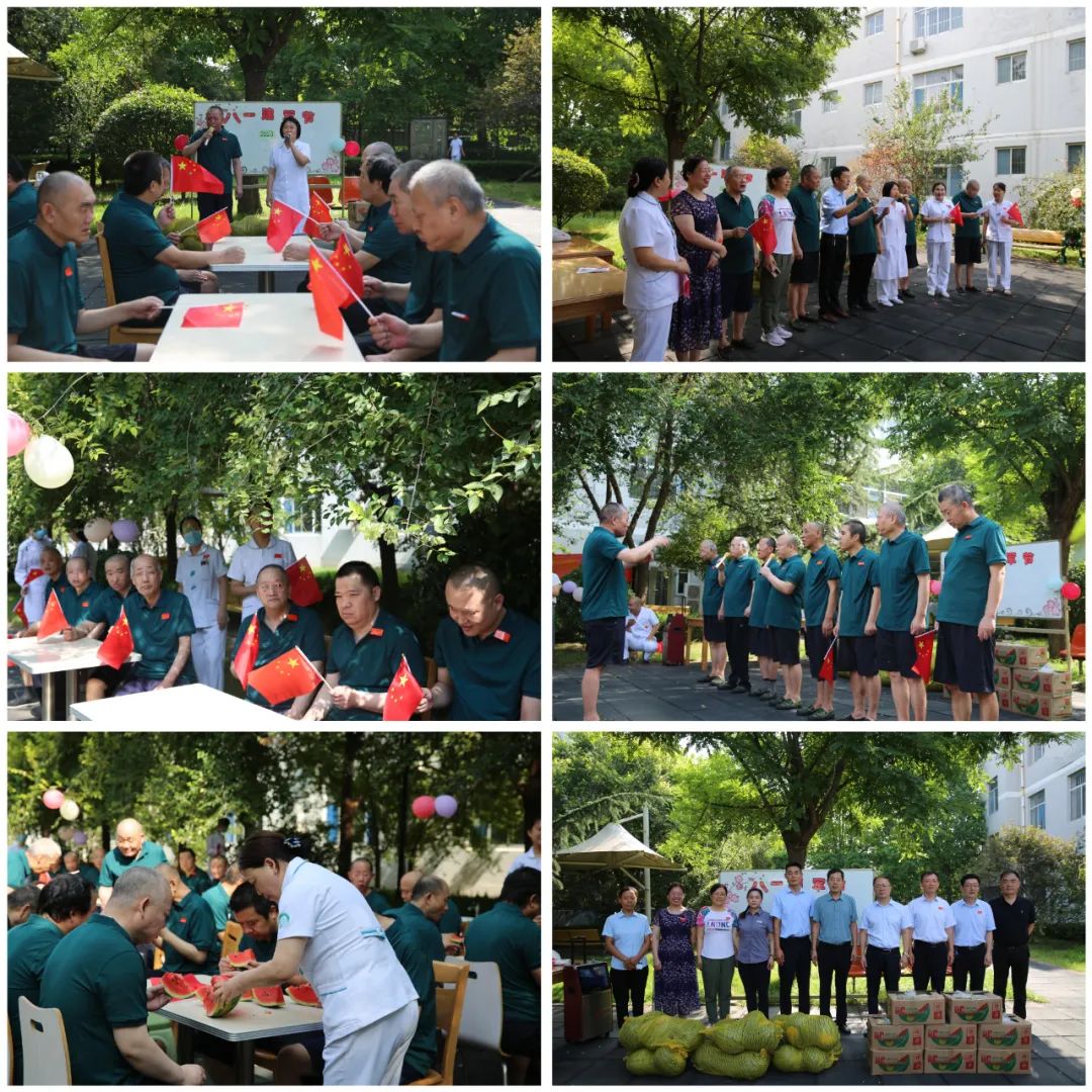 活動伊始,牛希國院長代表全院干部職工向在院優(yōu)撫對象致以節(jié)日的問候。表演在優(yōu)撫對象帶來的《正步走方陣表演》中拉開序幕,鏗鏘的步伐展現(xiàn)著優(yōu)撫對象的精神風(fēng)貌,隨后,歌曲《駝鈴》《軍中綠花》《駿馬奔馳保邊疆》《團(tuán)結(jié)就是力量》等一首首膾炙人口的紅歌將我們帶回了那段激情燃燒的歲月?,F(xiàn)場氣氛熱烈、掌聲不斷,大家精神飽滿、載歌載舞,熱烈表達(dá)出了優(yōu)撫對象及醫(yī)護(hù)人員對軍人由衷地贊揚和敬意。除了精彩的節(jié)目,院領(lǐng)導(dǎo)還給優(yōu)撫對象們發(fā)放了新衣,貞元物業(yè)公司為在院優(yōu)撫對象捐贈了水果。此外,病區(qū)還通過組織優(yōu)撫對象一起觀看紅色影片、吃水餃等多樣形式共同慶祝“八一”。