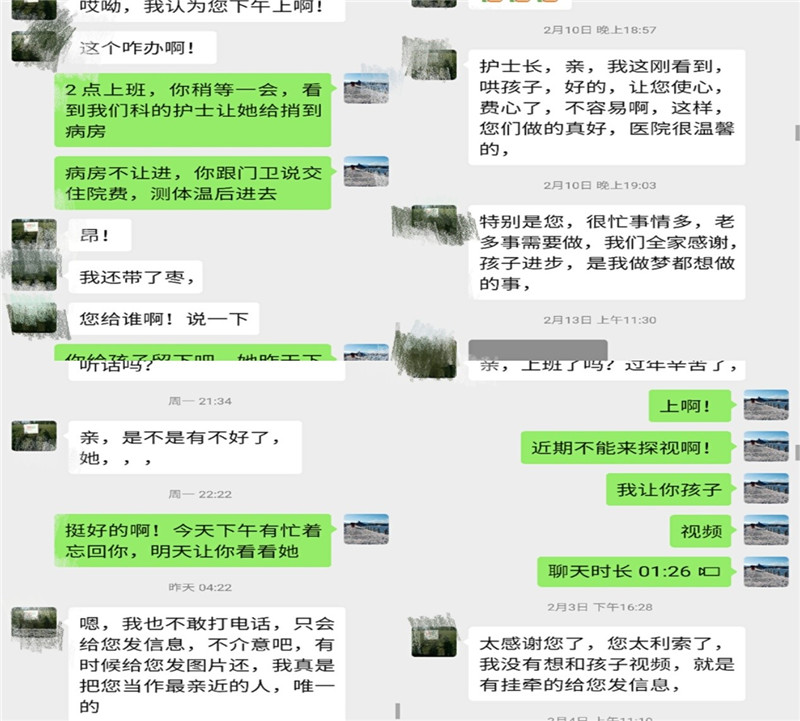 由于疫情家人不能前來探視,醫(yī)護(hù)人員了解每位病人情況,擔(dān)任起“家屬”角色,為有情緒波動的患者喂飯喂藥,同時積極開展“一對一”心理疏導(dǎo),并利用電話、視頻等多種方式讓患者與家屬線上溝通。
