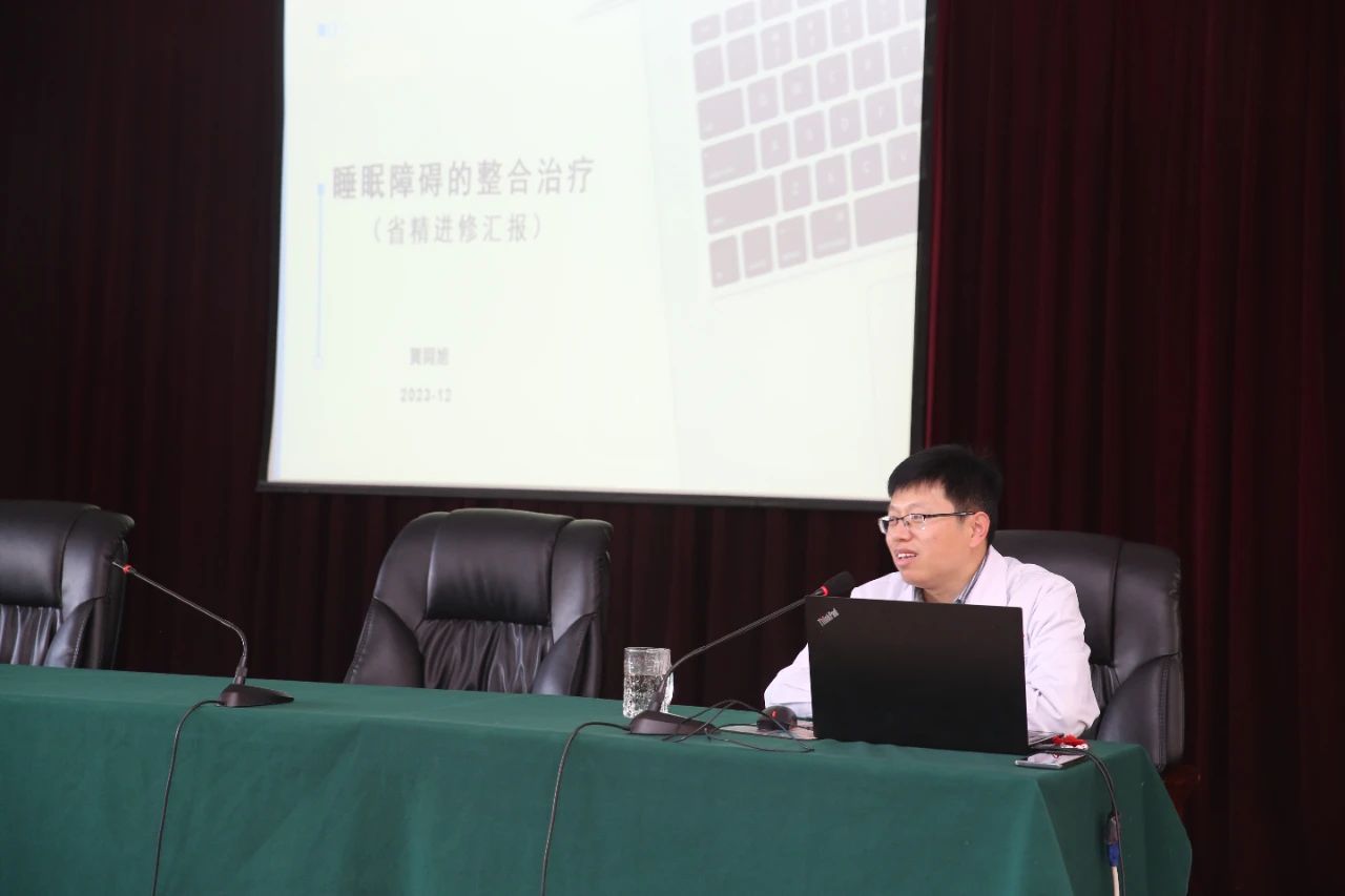 會(huì)上,黃同旭主任以“睡眠障礙的整合治療”為題,通過圖文并茂的PPT,從睡眠障礙的原理、成因、癥狀表現(xiàn)、睡眠衛(wèi)生教育以及各類治療方式五個(gè)方面進(jìn)行了專業(yè)講解,詳細(xì)介紹了心理治療、物理治療、中醫(yī)中藥治療、麻醉治療和作業(yè)治療等非藥物治療方式。同時(shí)根據(jù)醫(yī)院工作實(shí)際,在診斷證明、醫(yī)護(hù)交班、查房制度、治療手段等方面提出了可借鑒的經(jīng)驗(yàn),讓參會(huì)人員受益匪淺。