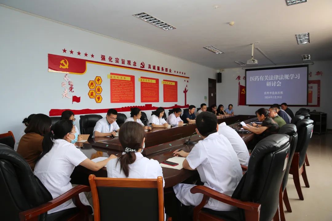 5月29日上午,濱州市優(yōu)撫醫(yī)院召開(kāi)醫(yī)藥有關(guān)法律法規(guī)學(xué)習(xí)研討會(huì),進(jìn)一步提高醫(yī)務(wù)人員法律意識(shí),防范醫(yī)療風(fēng)險(xiǎn),保障醫(yī)療安全。院黨總支書記李學(xué)軍,副院長(zhǎng)房崇村、延英芹,全體醫(yī)師及藥劑科工作人員參加會(huì)議。