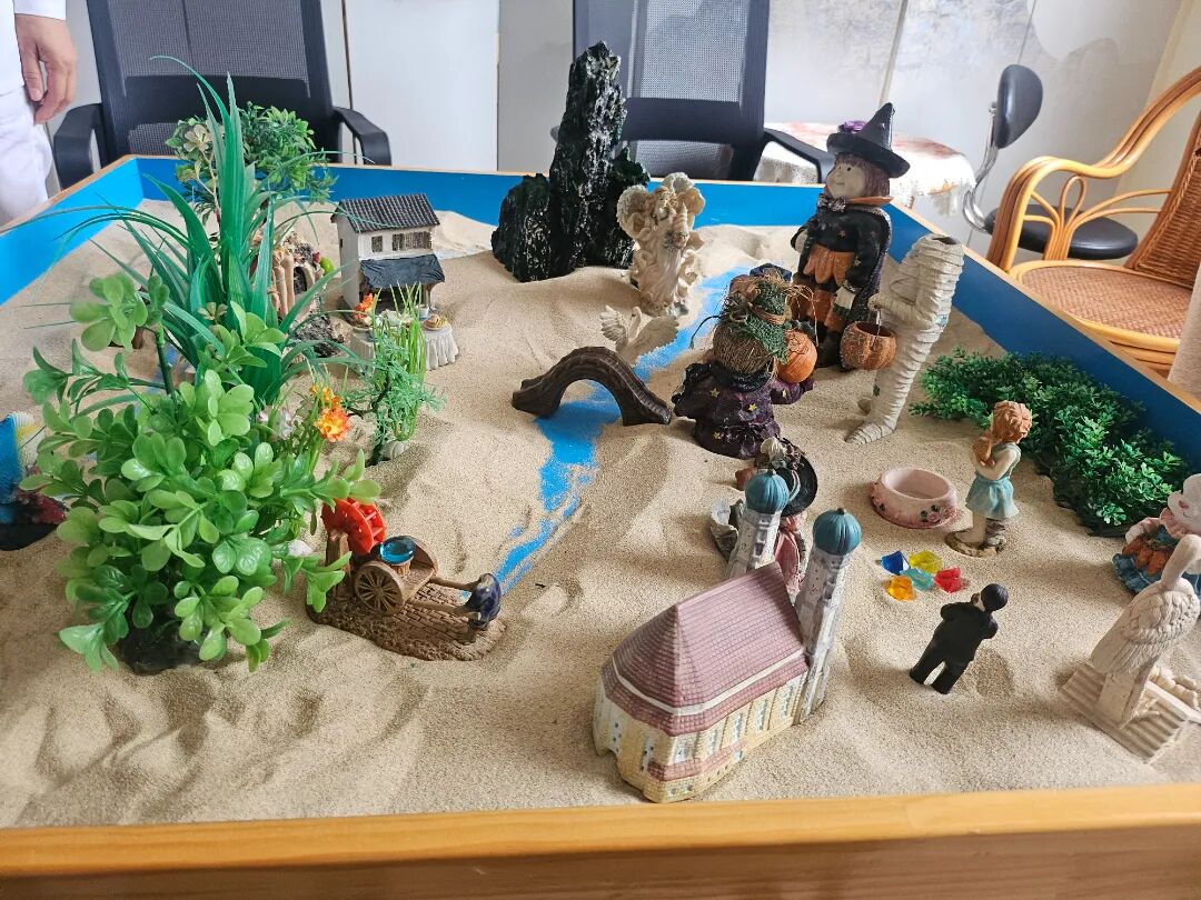 當指尖第一次觸碰溫潤的細沙,一種久違的寧靜感油然而生。仿佛所有喧囂與疲憊,都在這一刻被輕輕撫平。心理治療師說:“這里沒有對錯,沒有標準,只有你和內心最真實的表達?!贝蠹议_始自由挑選沙具,搭建屬于自己的世界。