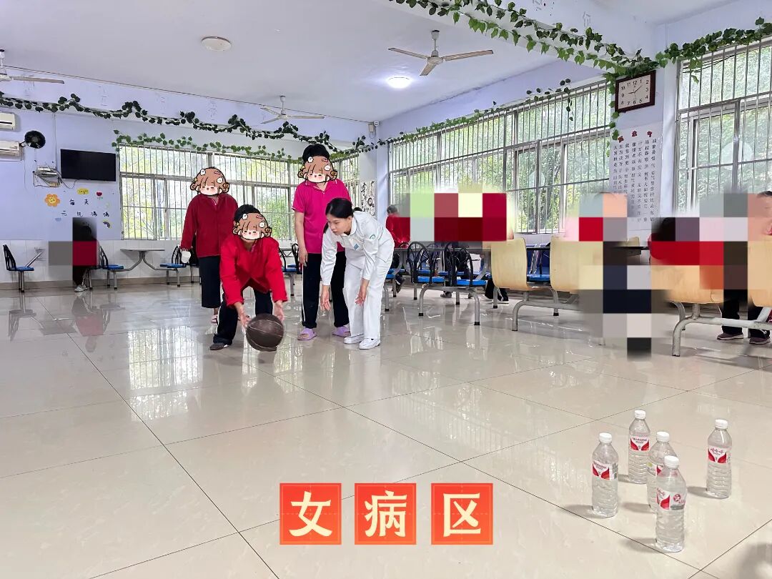 用籃球充當(dāng)“保齡球”,滾動、撞擊、歡呼…… 每一次成功擊倒目標(biāo)瓶,都引來陣陣喝彩。這項活動不僅考驗手眼協(xié)調(diào)能力,更讓大家在運動中釋放壓力、重拾活力,讓病房里的中秋多了份動感與朝氣。