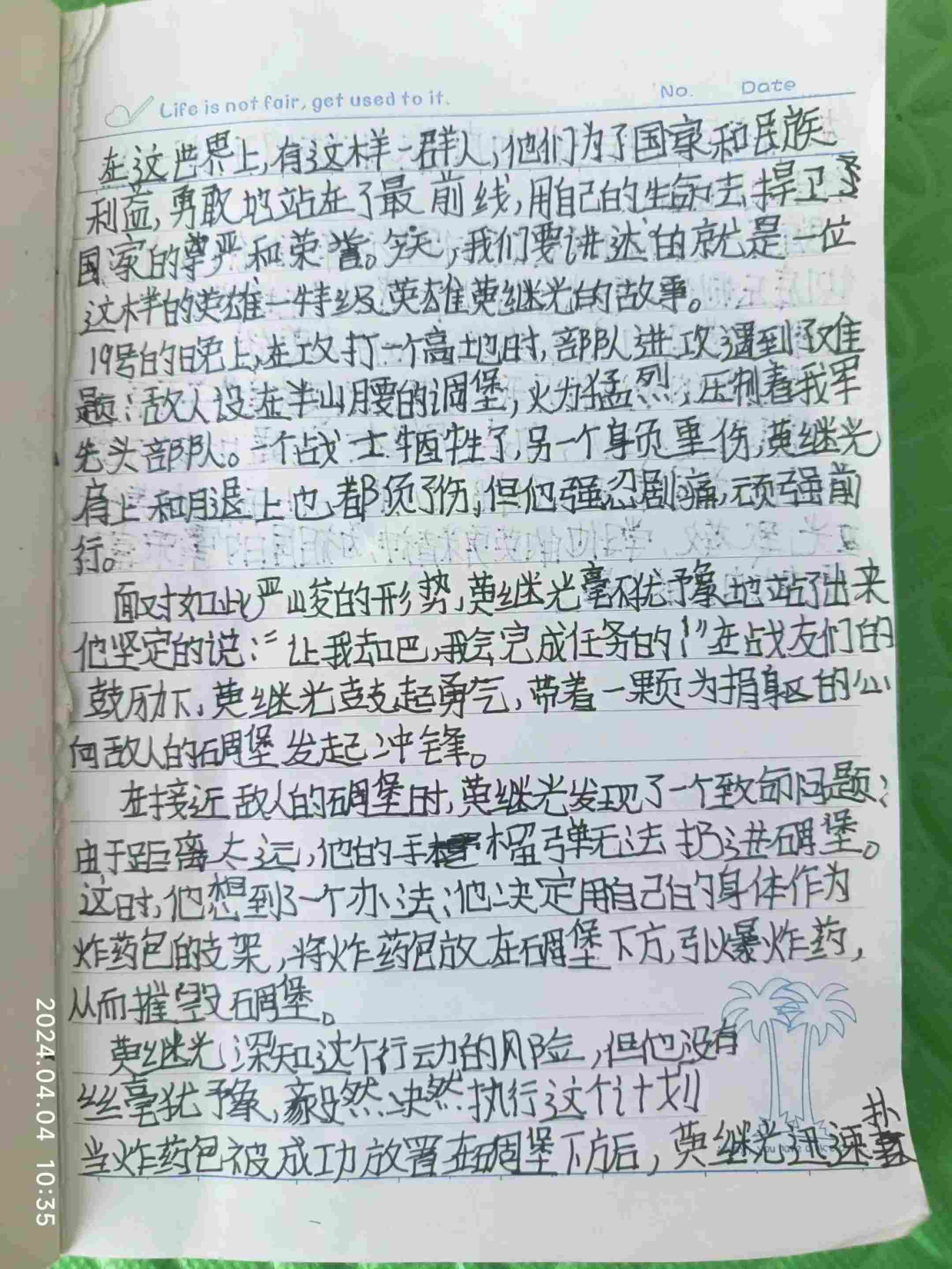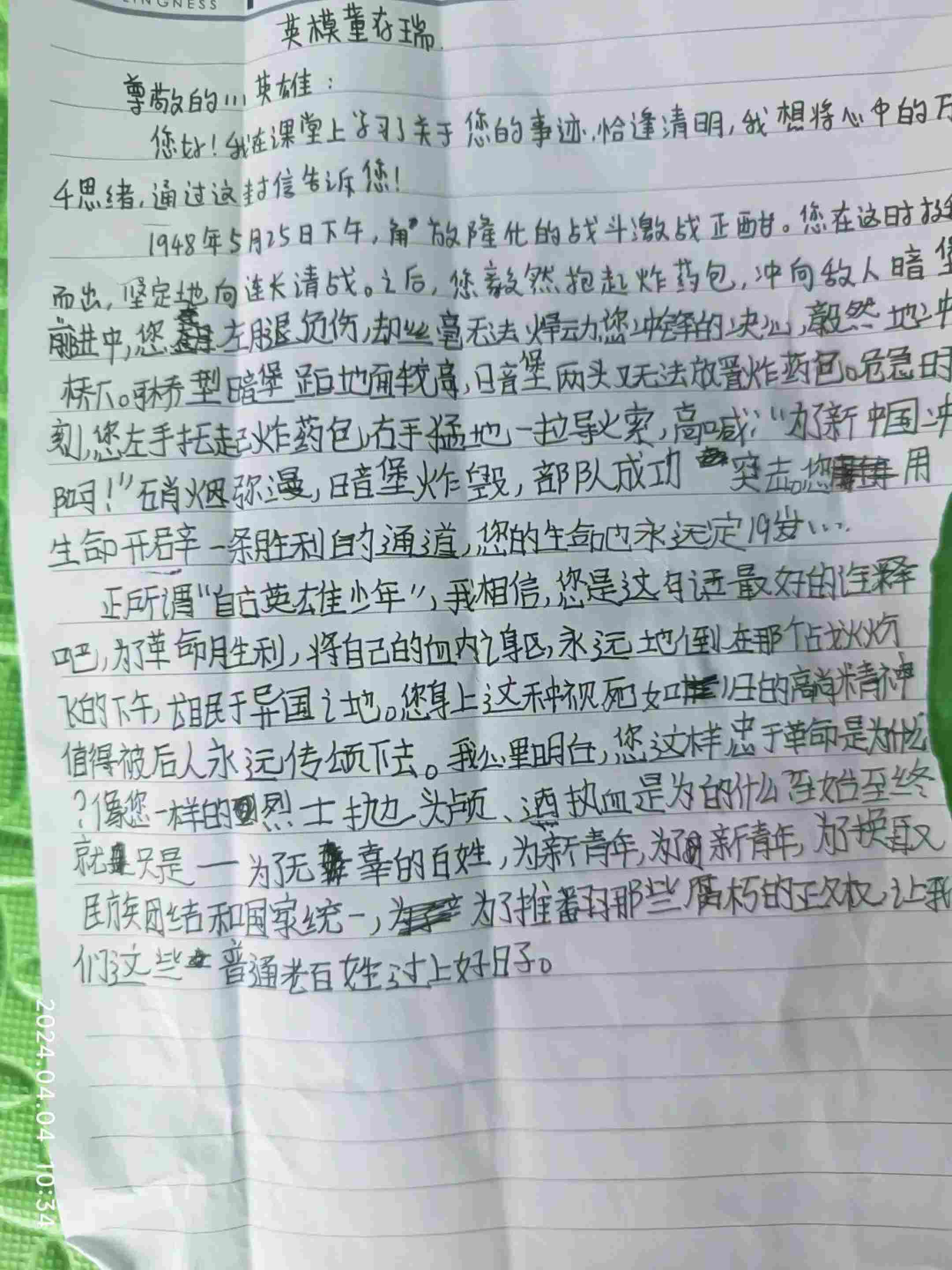隨后,大家在活動室圍坐一圈,講述清明習(xí)俗,分享先烈故事。在醫(yī)護人員的帶領(lǐng)下,患者們紛紛發(fā)言,逐一分享了狼牙山五壯士、趙一曼、董存瑞、黃繼光等烈士的感人事跡。講述過程中,大家有感而發(fā)、真情流露,紛紛表示要以英雄為榜樣,珍惜來之不易的幸福生活。其中,有兩位學(xué)生還為烈士寫了信,通過書信的形式致敬烈士,表達哀思。