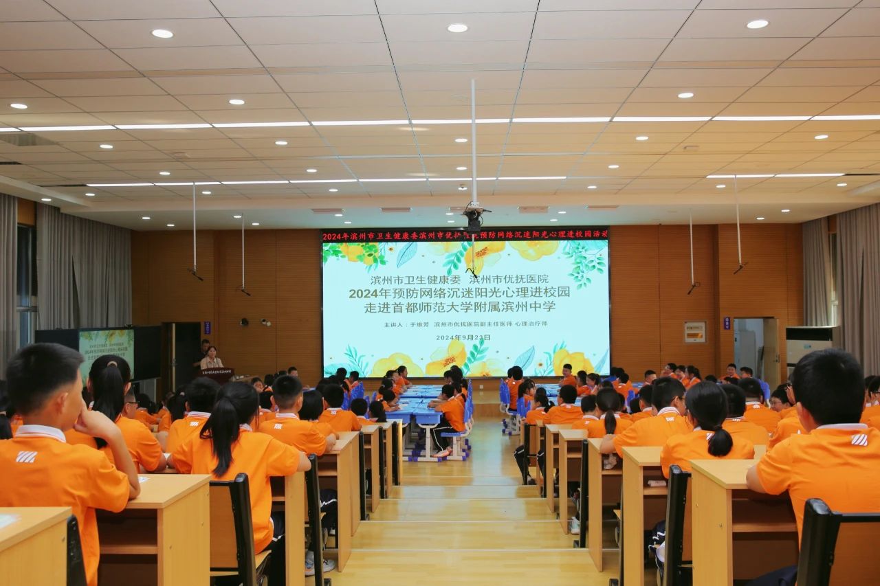 9月23日,濱州市優(yōu)撫醫(yī)院陽光心理“五進(jìn)”志愿服務(wù)隊(duì)走進(jìn)首都師范大學(xué)附屬濱州中學(xué),開展陽光心理“進(jìn)校園”活動(dòng),引導(dǎo)學(xué)生樹立正確的網(wǎng)絡(luò)使用觀念,預(yù)防游戲成癮,促進(jìn)學(xué)生的身心健康發(fā)展。