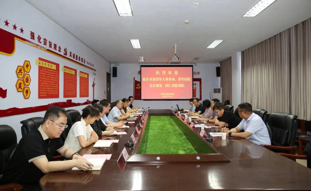 7月4日,臨沂市退役軍人事務(wù)局黨組成員、副局長(zhǎng)厲建彬帶隊(duì)到我院考察交流,圍繞優(yōu)撫醫(yī)院改革、綜合能力建設(shè)及優(yōu)撫資金使用等方面進(jìn)行考察交流并實(shí)地參觀(guān)。濱州市退役軍人事務(wù)局黨組成員、副局長(zhǎng)柴新勇,濱州市優(yōu)撫醫(yī)院班子成員及相關(guān)科室負(fù)責(zé)人陪同。