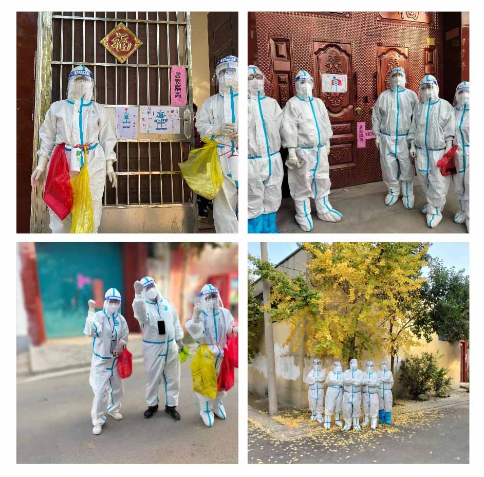 經(jīng)過一小時(shí)的奔波,我們順利到達(dá)龍陽鎮(zhèn),在經(jīng)歷嚴(yán)格的防護(hù)后,被當(dāng)?shù)刂驹刚呓拥烬堦栨?zhèn)李莊村,開始了新一天的入戶核酸采集工作。緊鑼密鼓的準(zhǔn)備下,我們?nèi)缤R粯颖环殖晌褰M,每組三人,一人負(fù)責(zé)領(lǐng)路敲門,一人負(fù)責(zé)登記信息,一人負(fù)責(zé)采集樣本,有條不紊的開始了入戶采集。