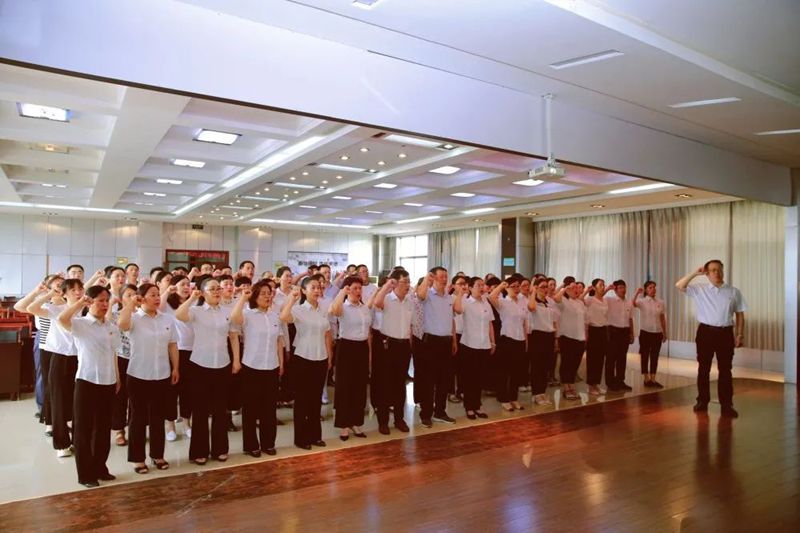 7月1日上午,市優(yōu)撫醫(yī)院組織開展“七一”黨員集中宣誓儀式。黨總支書記李學軍同志領誓,80名黨員面向黨旗,高舉右拳鄭重宣誓?;厮莩跣?、牢記使命,錚錚誓言將用一生踐行!宣誓結(jié)束后,醫(yī)院全體職工共同觀看了慶祝中國共產(chǎn)黨成立100周年大會直播。