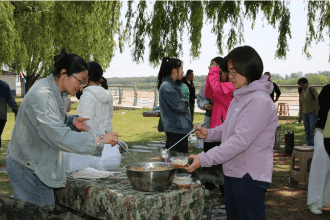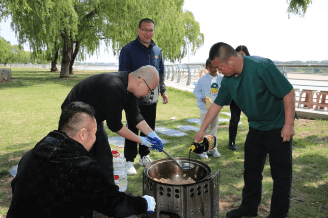 自由活動環(huán)節(jié),雙方職工分組協(xié)作,共同烹制午餐。有人布置桌椅,有人準備食材,大家分工明確,忙碌而有序。從煙火升騰的鐵鍋燉菜,到創(chuàng)意滿滿的水果拼盤,每一處細節(jié)都洋溢著團隊合作的溫暖。午餐后的香甜蛋糕更是讓每個人心中都泛起節(jié)日的甜蜜與喜悅。