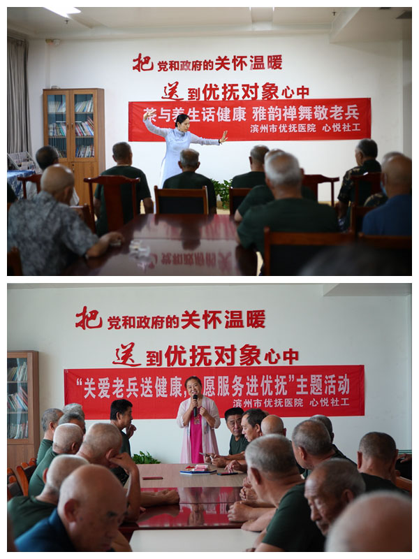 為了豐富優(yōu)撫對象的短期療養(yǎng)生活,進一步增強優(yōu)撫對象的榮譽感、歸屬感、幸福感,2022年全市撫恤定補優(yōu)撫對象短期休養(yǎng),濱州市優(yōu)撫醫(yī)院引入專業(yè)的社工服務團隊,圍繞優(yōu)撫對象的新期盼、新需求,開展了系列服務活動,讓優(yōu)撫對象能夠放松身心、愉悅心情、切身感受到黨和政府的關心、關愛和溫暖。