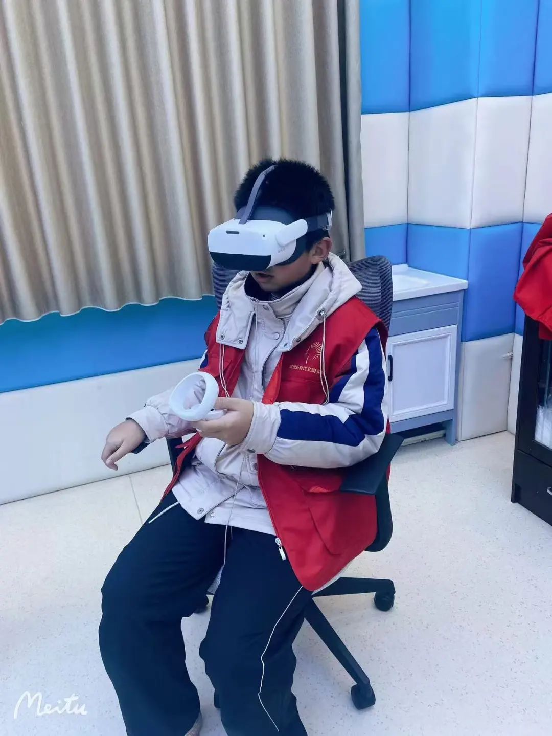 活動(dòng)中,孩子們?cè)趯I(yè)工作人員的引導(dǎo)下,體驗(yàn)了智能反饋心理宣泄項(xiàng)目,包括吶喊宣泄、擊打宣泄,通過(guò)科學(xué)的方式釋放學(xué)習(xí)壓力和消極情緒。VR虛擬現(xiàn)實(shí)體驗(yàn)和實(shí)體行為體驗(yàn)更是讓孩子們?cè)诔两交?dòng)中感受到科技的魅力,收獲了滿滿的快樂(lè)。