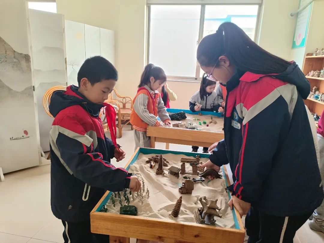 在沙盤(pán)游戲區(qū),孩子們共同體驗(yàn)了團(tuán)體沙盤(pán)游戲,通過(guò)創(chuàng)造、表達(dá)、探索與發(fā)現(xiàn),體驗(yàn)了社交互動(dòng)的樂(lè)趣。他們與同伴合作,在自由構(gòu)建的世界中無(wú)聲地表達(dá)自我。這種充滿成就感的體驗(yàn),不僅滿足了他們的好奇心,更提升了他們的自信心。