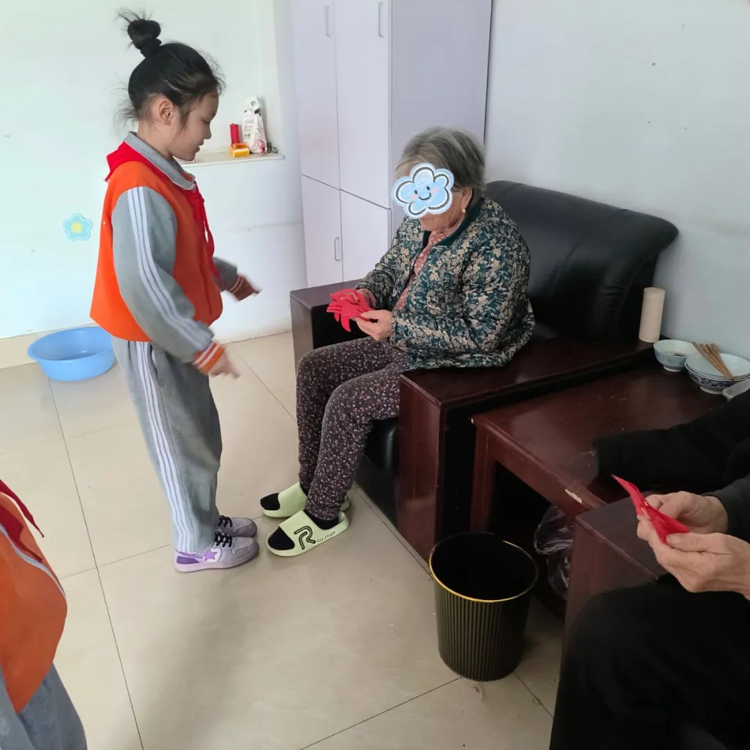 活動(dòng)的最后,孩子們親手制作了剪紙作品,并將這些充滿祝福的作品送給了在開(kāi)放病區(qū)住院的爺爺奶奶們,祝福他們?cè)缛湛祻?fù),用童真和快樂(lè)為老人的住院生活增添了一抹亮色。老人們感受到了溫暖和關(guān)懷,而孩子們也體會(huì)到了“贈(zèng)人玫瑰,手留余香”的快樂(lè)。
