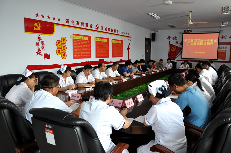 會(huì)上,黨總支書記周其東同志就如何學(xué)習(xí)、如何貫徹習(xí)近平總書記7·26重要講話精神做了詳細(xì)講解。醫(yī)院院長(zhǎng)韋安祥同志和與會(huì)人員共同學(xué)習(xí)了習(xí)近平總書記7·26重要講話精神全文,并就學(xué)習(xí)貫徹進(jìn)行了安排部署。