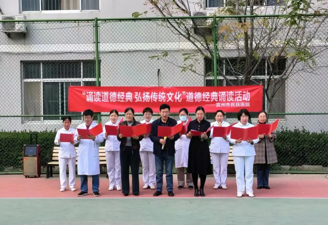 10月21日,濱州市優(yōu)撫醫(yī)院在病區(qū)花園舉行“誦讀道德經(jīng)典 弘揚(yáng)傳統(tǒng)文化”經(jīng)典誦讀活動(dòng)。來(lái)自各支部的黨員、干部職工以及住院患者們輪番登場(chǎng),帶來(lái)了一場(chǎng)傳頌經(jīng)典的誦讀盛宴。